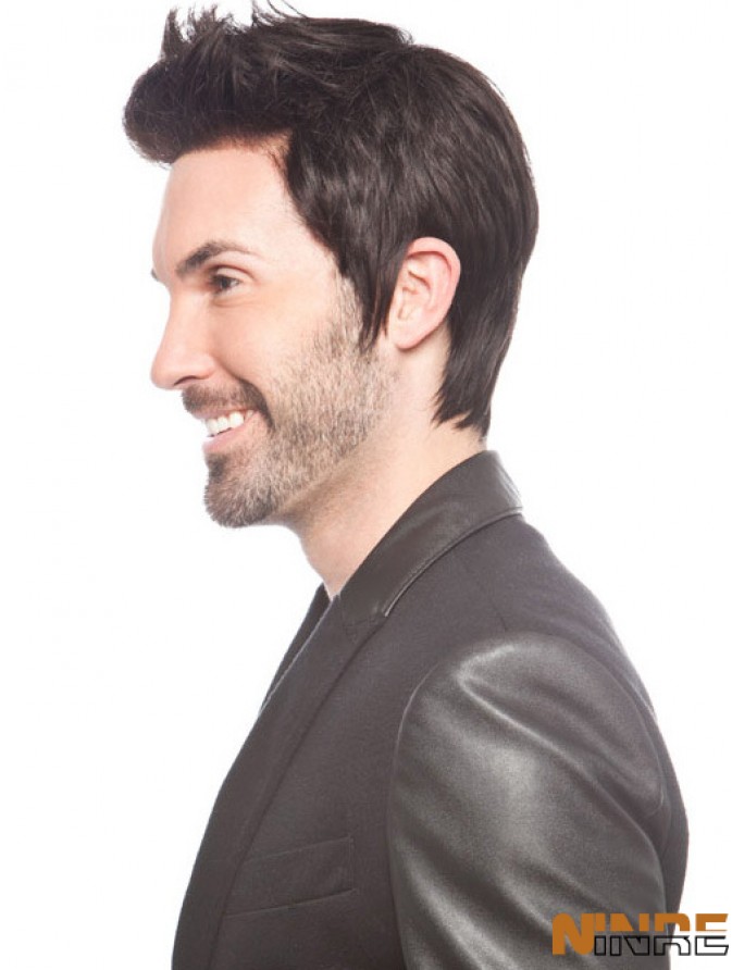 Perruques noires droites noires 100% nouées à la main pour hommes