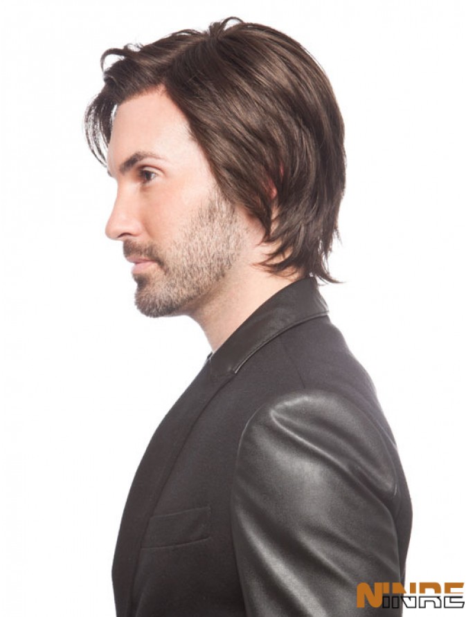 Full Lace Brown Short Straight Remy Human Fake Hair For Men