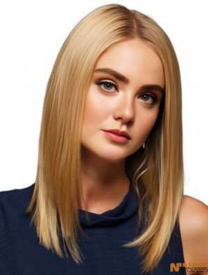 Ombre douce / 2 tons longue ligne droite sans frange Perruques en dentelle humaine de 20 pouces
