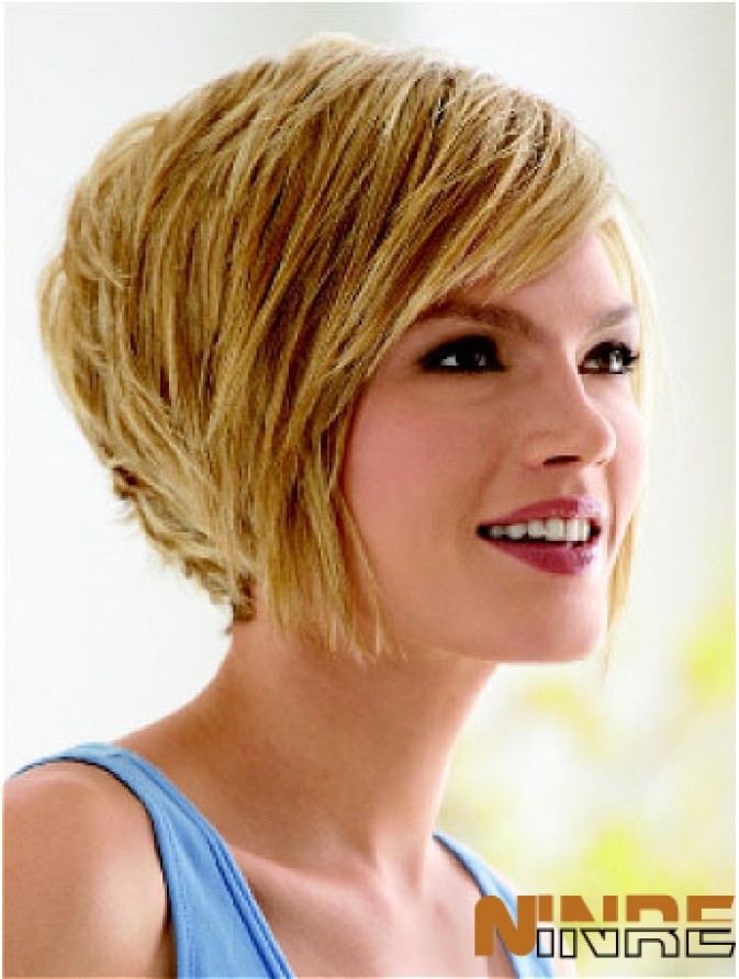 Bob perruque avec frange avec longueur de menton de style droit sans capuchon