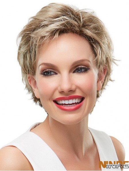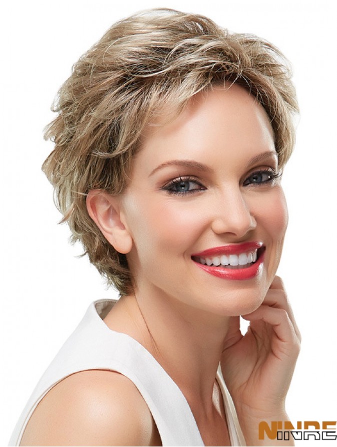 Boycuts Blonde Wavy 6 pouces courtes perruques synthétiques