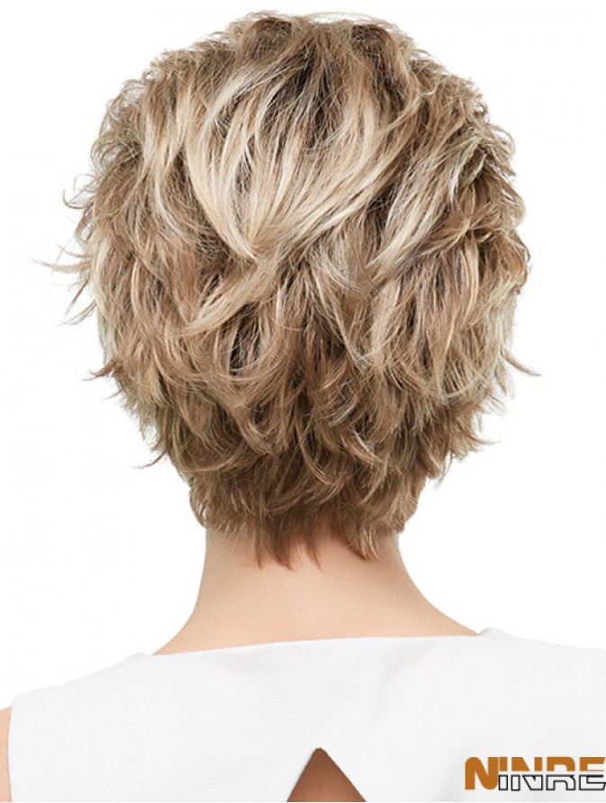 Perruques courtes blondes en couches ondulées pratiques de 8 pouces