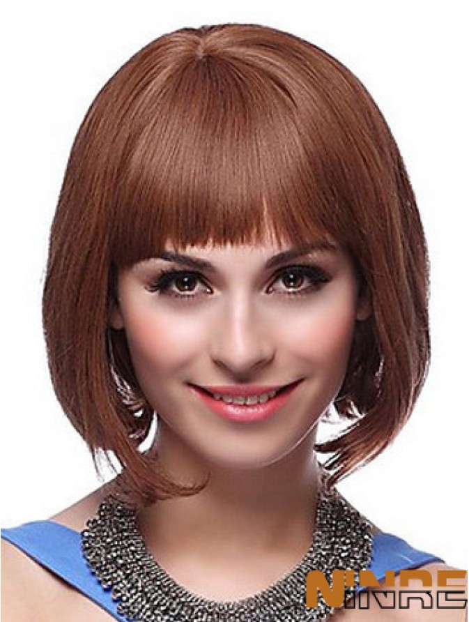 Synthétique Ombre / 2 tons droite 14 pouces sans capuchon avec frange longue perruque
