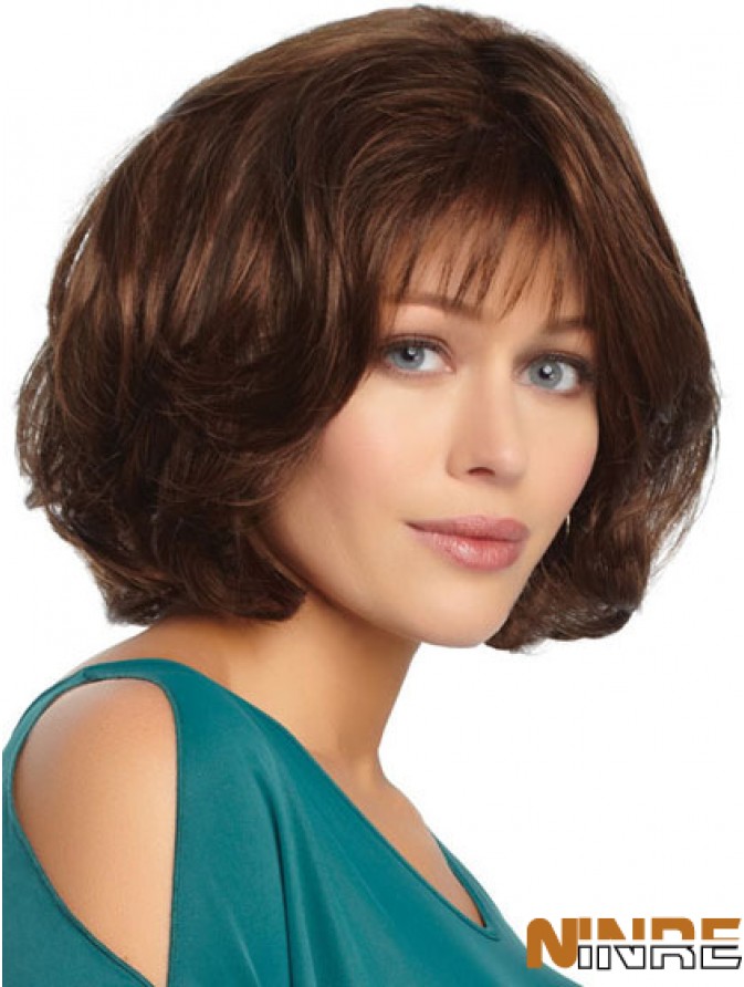 Perruques courtes en couches de 8  inchbrun ondulé confortables