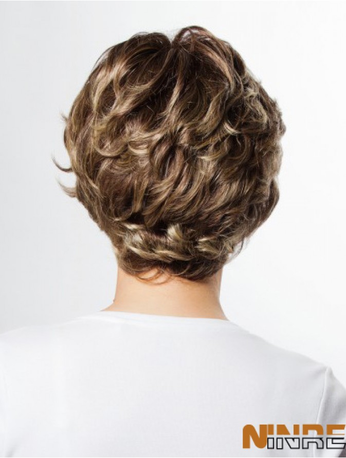 Ondulé court brun 8 pouces 100% perruques Bob populaires à la main
