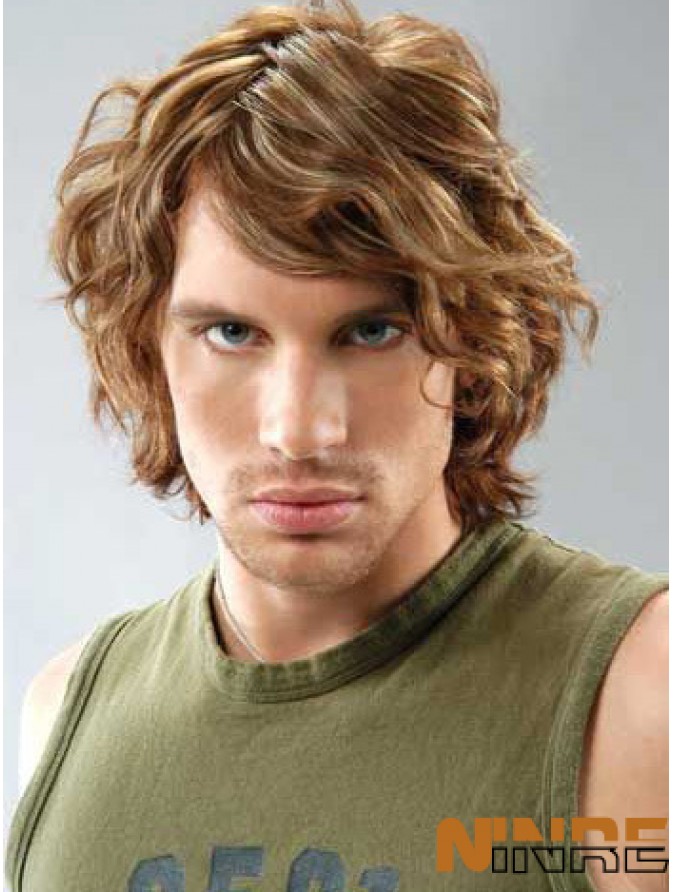 Curly Full Lace Short With Bangs Mens Short Blonde Curly Wig