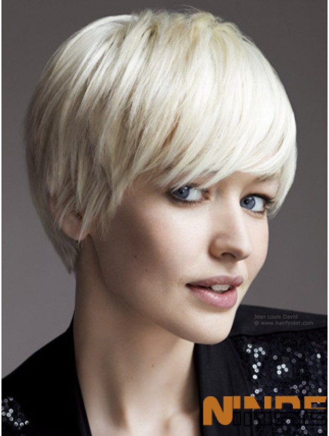 Blonde Platine Ondulée Avec Frange 12 pouces Perruques Partie Monofilament
