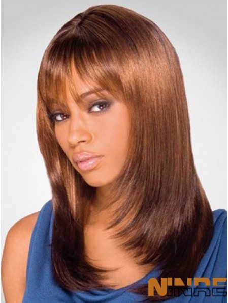 En ligne Longueur d'épaule Yaki 16 pouces Synthétique Sans Colle Avant de Lacet Perruques