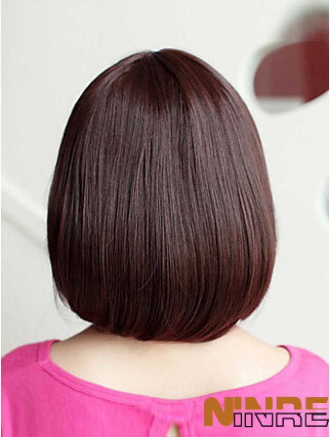 Avec Bangs Blonde Longueur de menton droite 10 pouces Perruques moyennes exquises