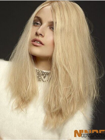 Blonde Monofilament Vrai Cheveux  Perruques Longue Longueur En Couches Coupées Ondulées Style Perruques