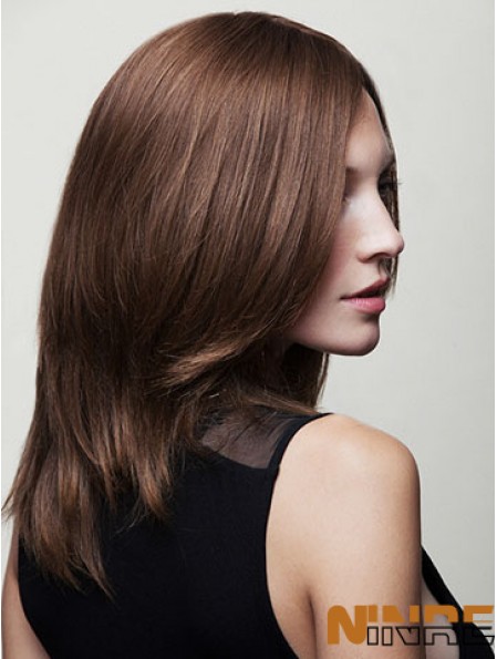 Layered Long Brown Wavy 16 pouces perruques de cheveux humains abordables