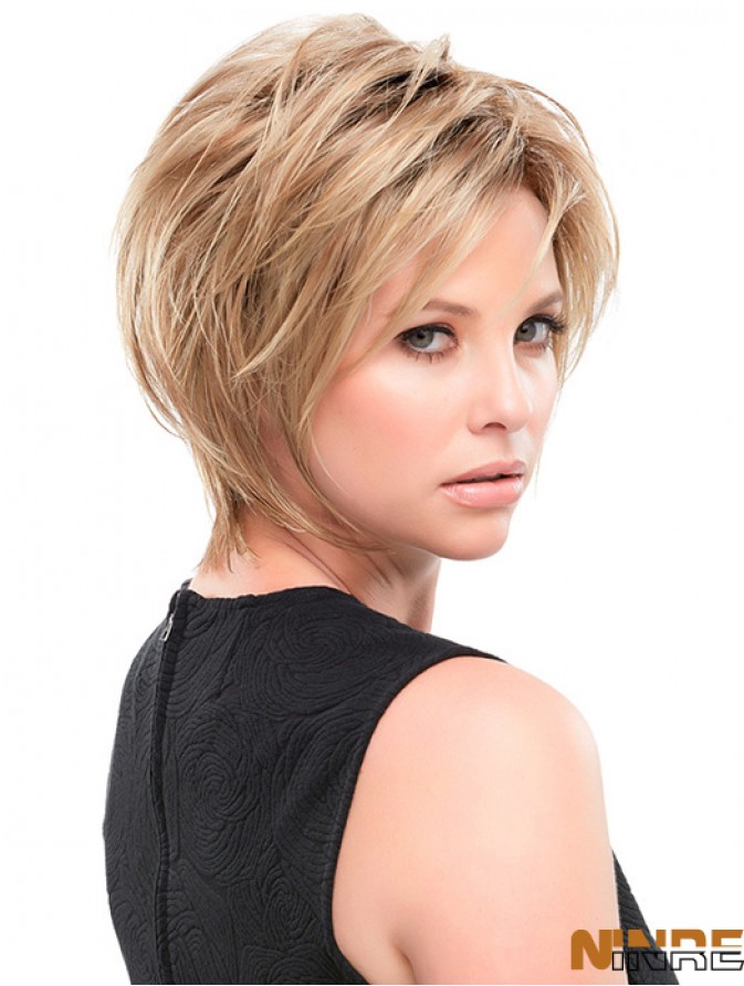 Coiffures droites en couches synthétiques blondes de 10 pouces pour les cheveux courts