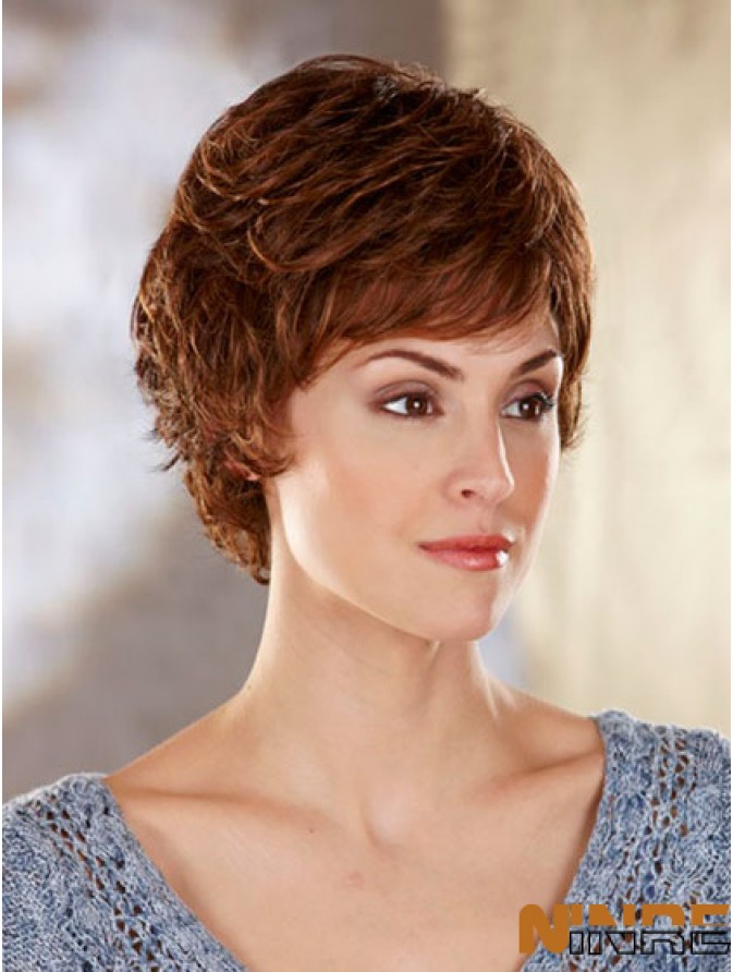 Perruques courtes en couches de 8  inchbrun ondulé confortables