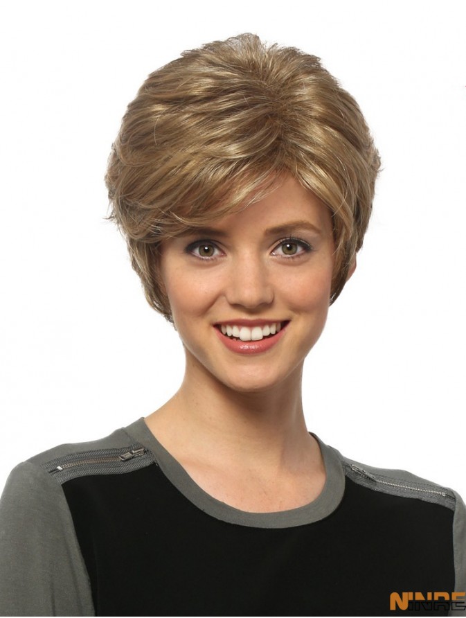 Perruques courtes de 8  inchondulées blondes ondulées