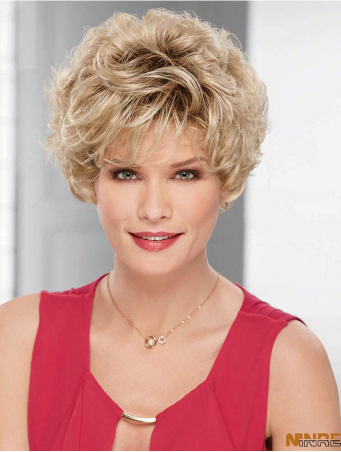 Perruques synthétiques courtes ondulées blondes idéales