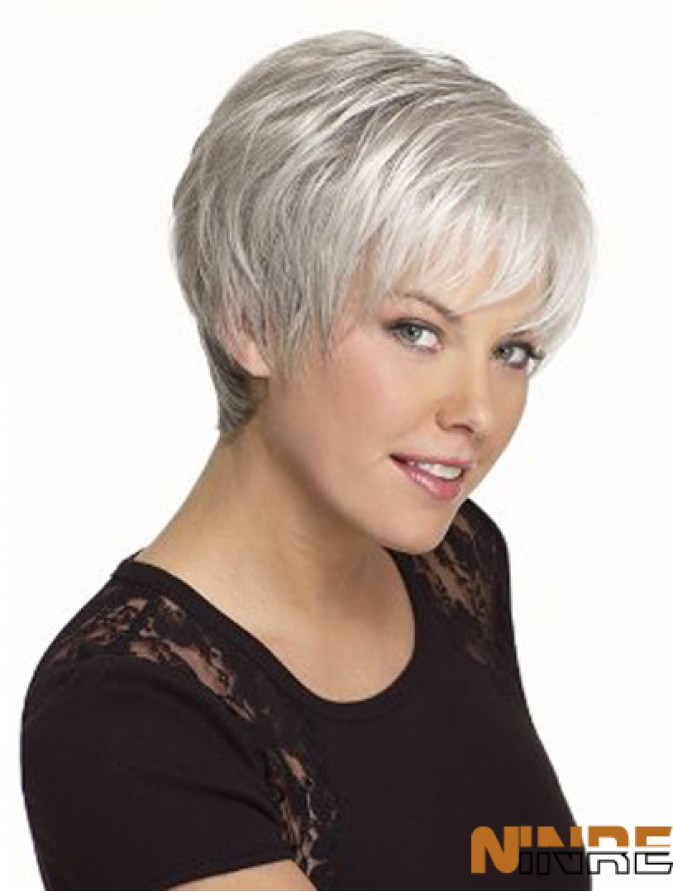 Perruques cheveux humains gris courte Style droit