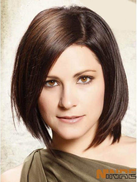 Il s'agit d'une perruque de coiffure en couches Bob à l'encadrement moyen avec un balayage de frange. Les magnifiques cheveux raides sur le côté encadrent parfaitement votre visage et créent un look chic et élégant.