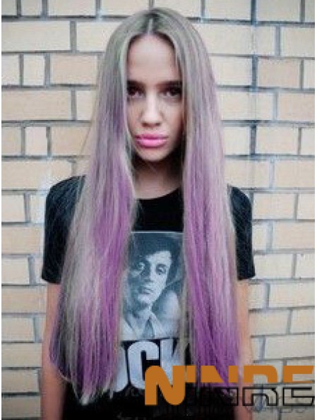 Ombre à la mode / 2 tons longue ligne droite sans frange 28 inchPerruques en dentelle humaine