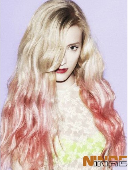 Ombre pas cher / 2 tons longs ondulés avec frange 26  inchperruques de dentelle humaine