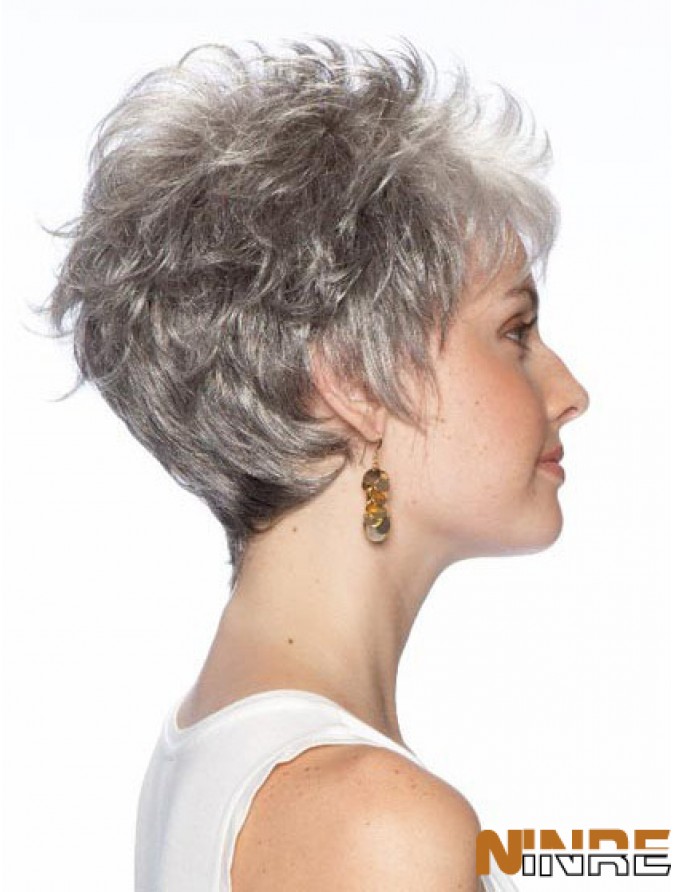 Perruque courte grise avec avant en dentelle synthétique style ondulé coupe grise