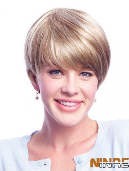 Perruques blondes de cheveux humains avec monofilament en couches coupe courte longueur