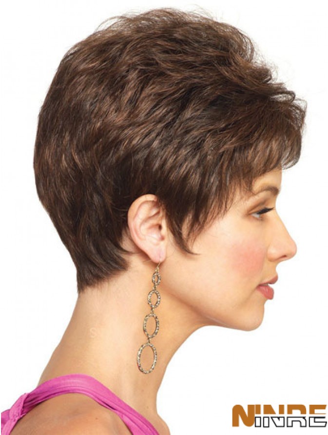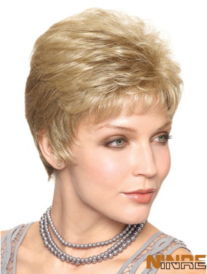 Blonde recadrée droite capless boycuts 6 pouces perruques synthétiques à la mode pour dame âgée
