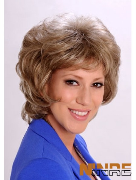 Vieille dame perruques couleur blonde style ondulé longueur de menton