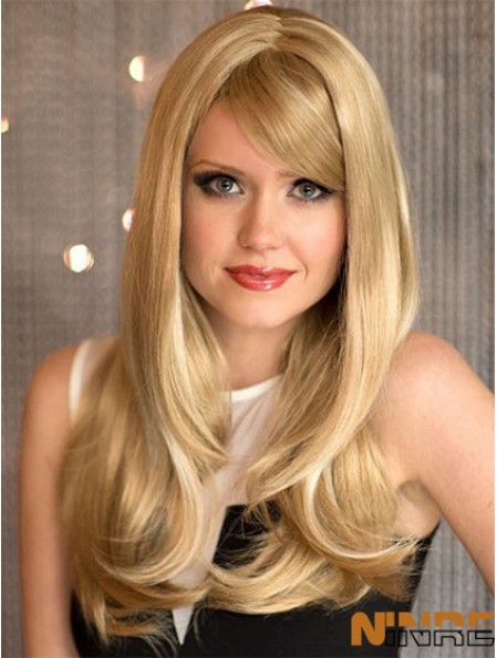 Blonde impertinente ondulée avec frange perruques longues sans bonnet