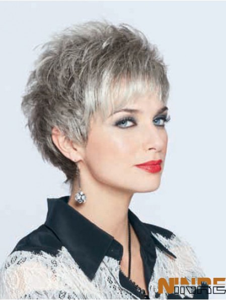 Perruques courtes droites grises synthétiques